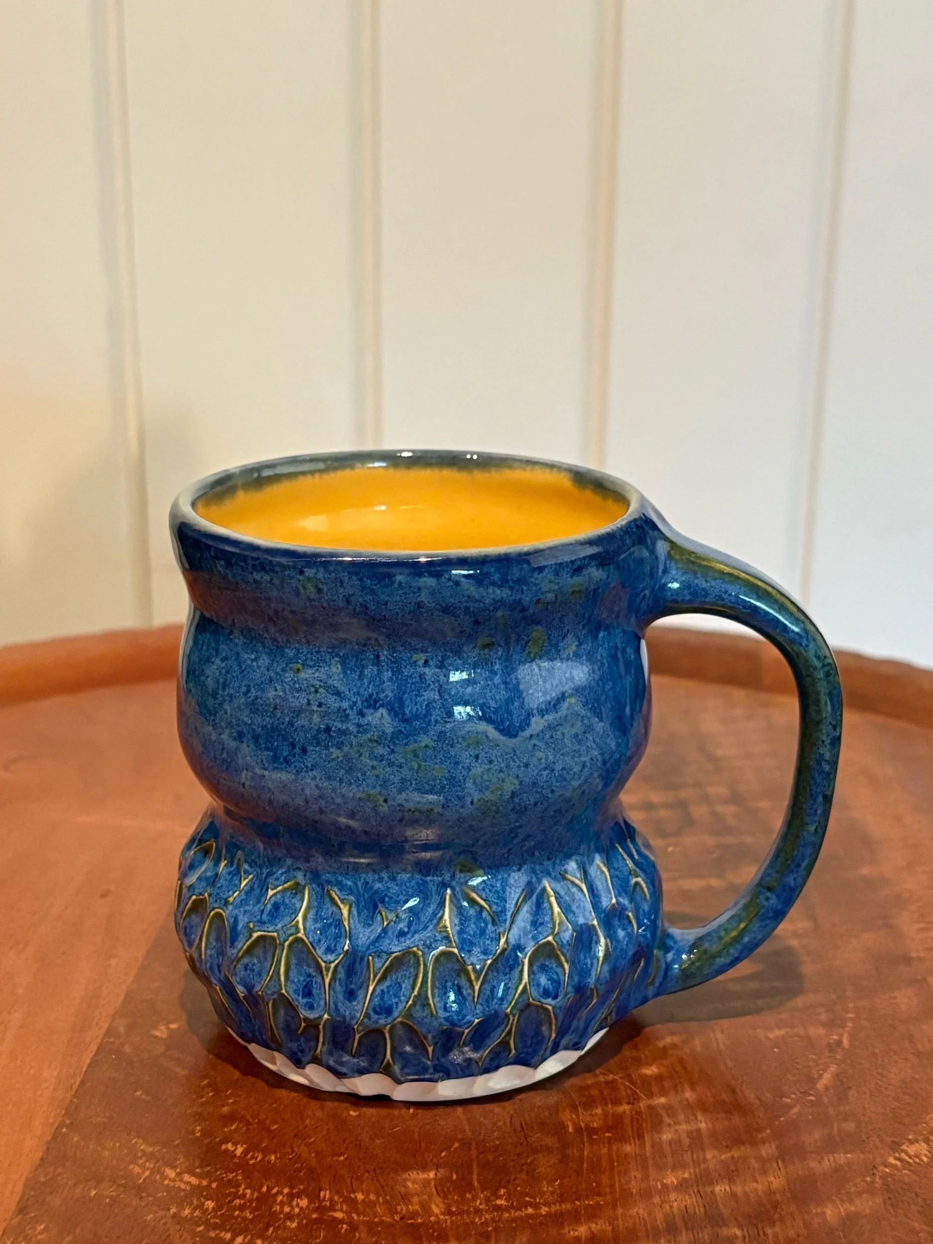 Shop › School spirit mug in blue and gold Image 1 of 1 School spirit mug in blue and gold $40.00 sold out Handmade ceramic mug. Microwave and dishwasher safe Sold Out Added! Handmade ceramic mug. Microwave and dishwasher safe